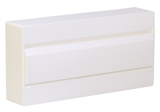 Накладної розподільний щит Cosmos Hager VD118PD з білою, не прозорою дверцятами. 18-модульний, 1 ряд. Призначений для модульних пристроїв з монтажною глибиною до 70 мм.